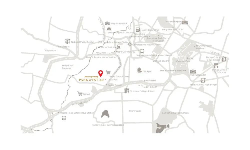 Shapoorji Pallonji introduces Parkwest 2.0 – a continuation of one of Central Bengaluru’s most expansive and luxurious residential communities. This landmark project offers a seamless fusion of intelligent design, everyday functionality, and a wide array of premium amenities. Sequoia at Parkwest 2.0 reflects Bengaluru's transformation from its roots as the Garden City to its modern identity as the Silicon Valley of India. Located in the historic locale of Binnypet – once famous for its flourishing textile mills in the 19th century – Parkwest 2.0 stands as a beacon of progress and contemporary living. As the final chapter in the Parkwest legacy, Sequoia marks the culmination of a visionary journey that began with Shapoorji Pallonji Parkwest.